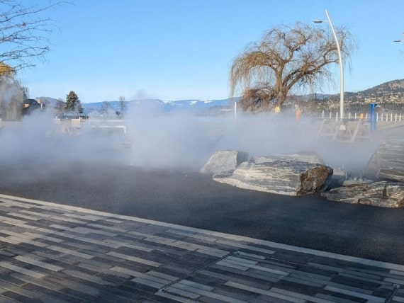 Depuis son achèvement, le Pandosy Waterfront Park est rapidement devenu une destination prisée des résidents et des touristes. Le système FOGPAVER™ offre aux visiteurs une expérience rafraîchissante et interactive, tout en constituant une alternative durable aux installations d’eau traditionnelles. Les pavés tactiles ont particulièrement séduit les enfants, qui aiment interagir avec le système pour déclencher la brume, faisant du parc un lieu de prédilection pour les familles pendant les mois les plus chauds.